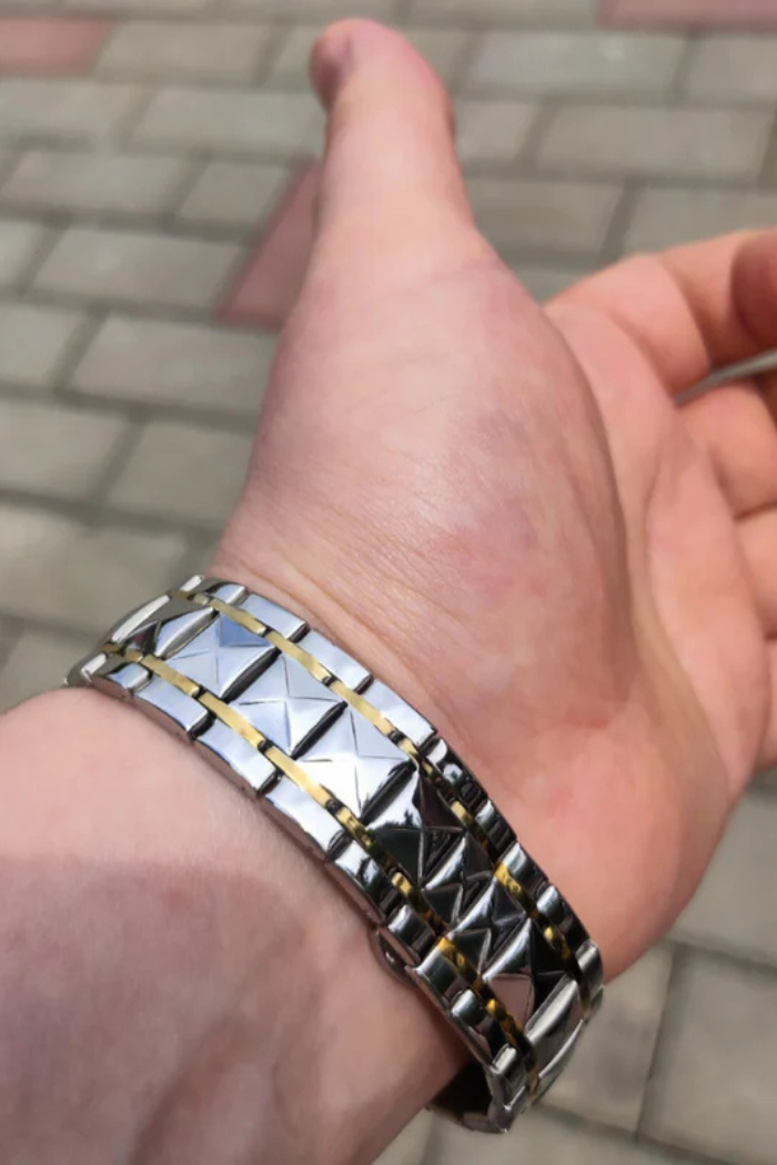 Sua pulseira é construída em aço inoxidável com titânio embutido para um toque de luxo, garantido uma durabilidade excepcional!